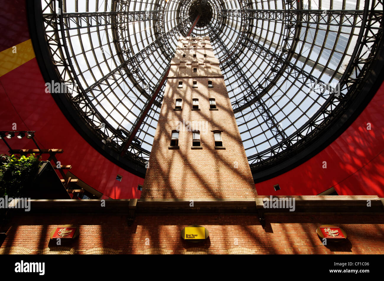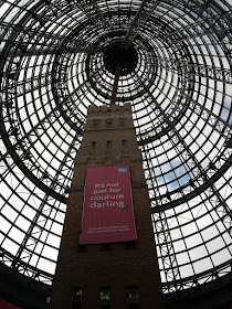 Coops Shot Tower Melbourne Central : This historic melbourne bullet factory is fully encased in a massive glass and steel cone.