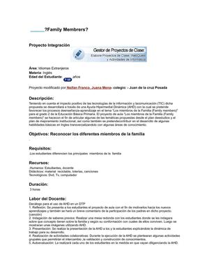 Descripcion De Los Miembros De La Familia En Ingles - Partiendo de oraciones generales acerca de la familia, escribes el miembro de la familia correspondiente.